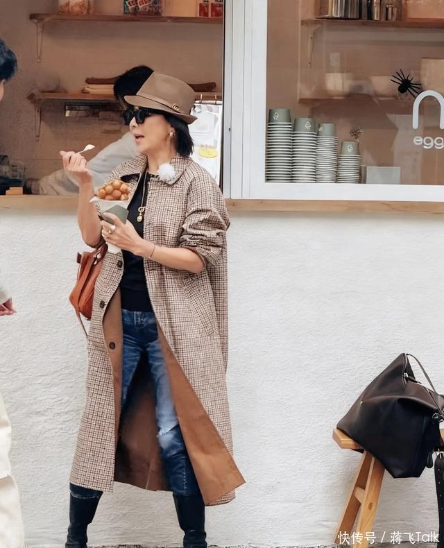 要说最正常的还得是刘嘉玲,别看红毯上的刘嘉玲总喜欢奇装异服,但是录综艺节目她的打扮矜持又贵气,还非常显气质。 刘嘉玲穿了一件棕色千鸟格的风衣,配了同色系的小礼帽、棕色的背包,就连耳环都那么素雅别致,整个是老钱风的贵气穿搭。