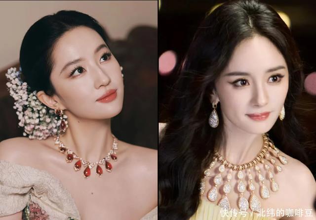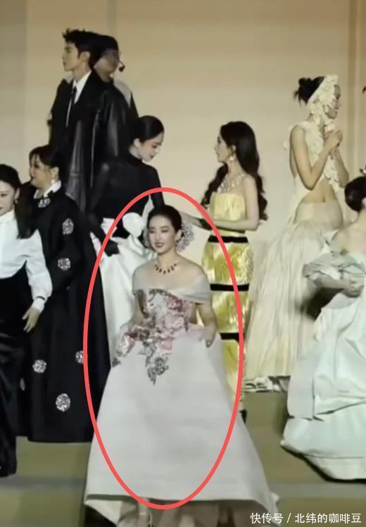 不过,甭管有多少重量级人物来,最是Vouge“心头好”的,还得数神仙姐姐刘亦菲。 压轴出场的刘亦菲,造型师给她来了一个“花仙子”的造型,亮相后直接惊艳全场。 很多人都说,刘亦菲出场后,看了几遍才发现她脖子上的珠宝,因为第一眼先被这张脸吸引,第二眼是发型,没想到满天星干花,都被刘亦菲戴出了珠宝翡翠的感觉。 说到刘亦菲的珠宝,就不得不提红毯上的抓马事件。据说刘亦菲这次戴的宝格丽珠宝价值700万,可没想到这么贵重的东西,竟然在走秀过程中忽然开了。