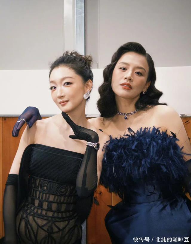 在最后大合影的时候,钟楚曦也跨越了人海,站在了刘亦菲身边,两人站在一起,还颇有点“姐妹俩”的感觉。